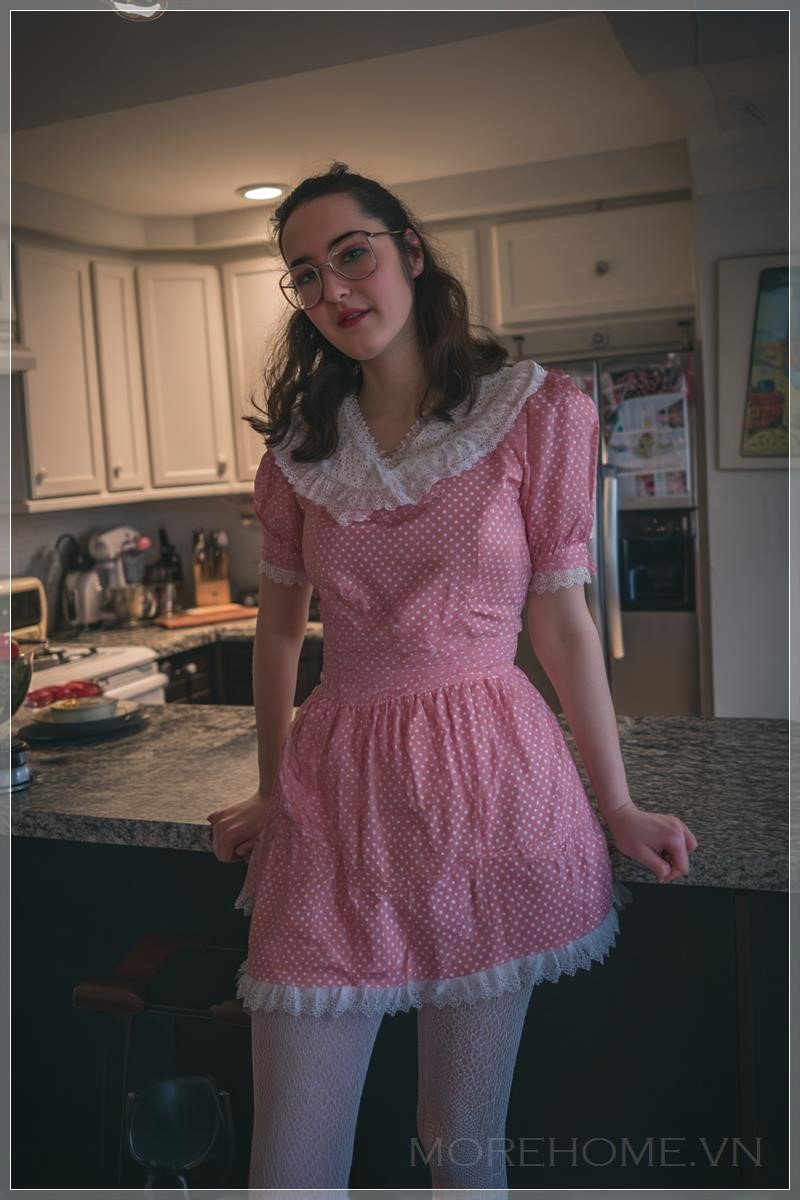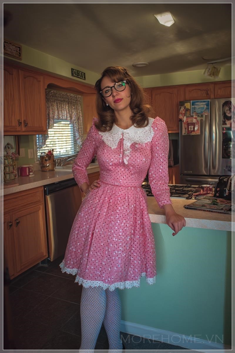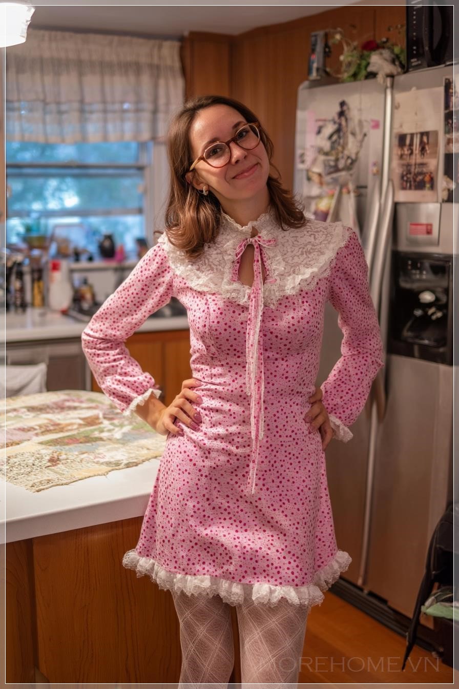 Với một chiếc váy chấm bi hồng mang đậm nét hoài cổ, không thể không nhắc đến các chi tiết tinh xảo như cổ áo ren trắng, những đường viền lạ mắt và thiết kế ôm sát cơ thể. Màu hồng nhẹ nhàng, kết hợp cùng họa tiết chấm bi, tạo nên một vẻ đẹp thanh thoát, dịu dàng mà không kém phần sành điệu. Váy được làm từ chất liệu vải tự nhiên, mang đến cảm giác thoải mái và dễ chịu, đồng thời tôn lên vẻ đẹp tự nhiên của người mặc.